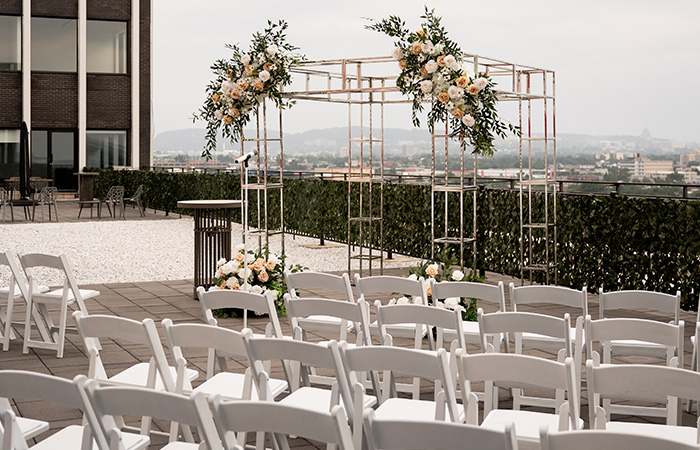 Our newest venue sits on the restored rooftop of a historic building nestled in the Chabanel district. A beautiful transparent tent invites guests to eat and dance under the stars, while enjoying city views. This three-season space offers a unique experience for any type of gathering.
